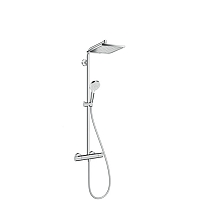 Colonne de douche CROMETTA E280. Douche de tête Crometta E 280. 1 jet avec mitigeur thermostatique. Douche de tête orientable. Bras de douche pivotant. Jet RainAir. Butée de confort à 40°C