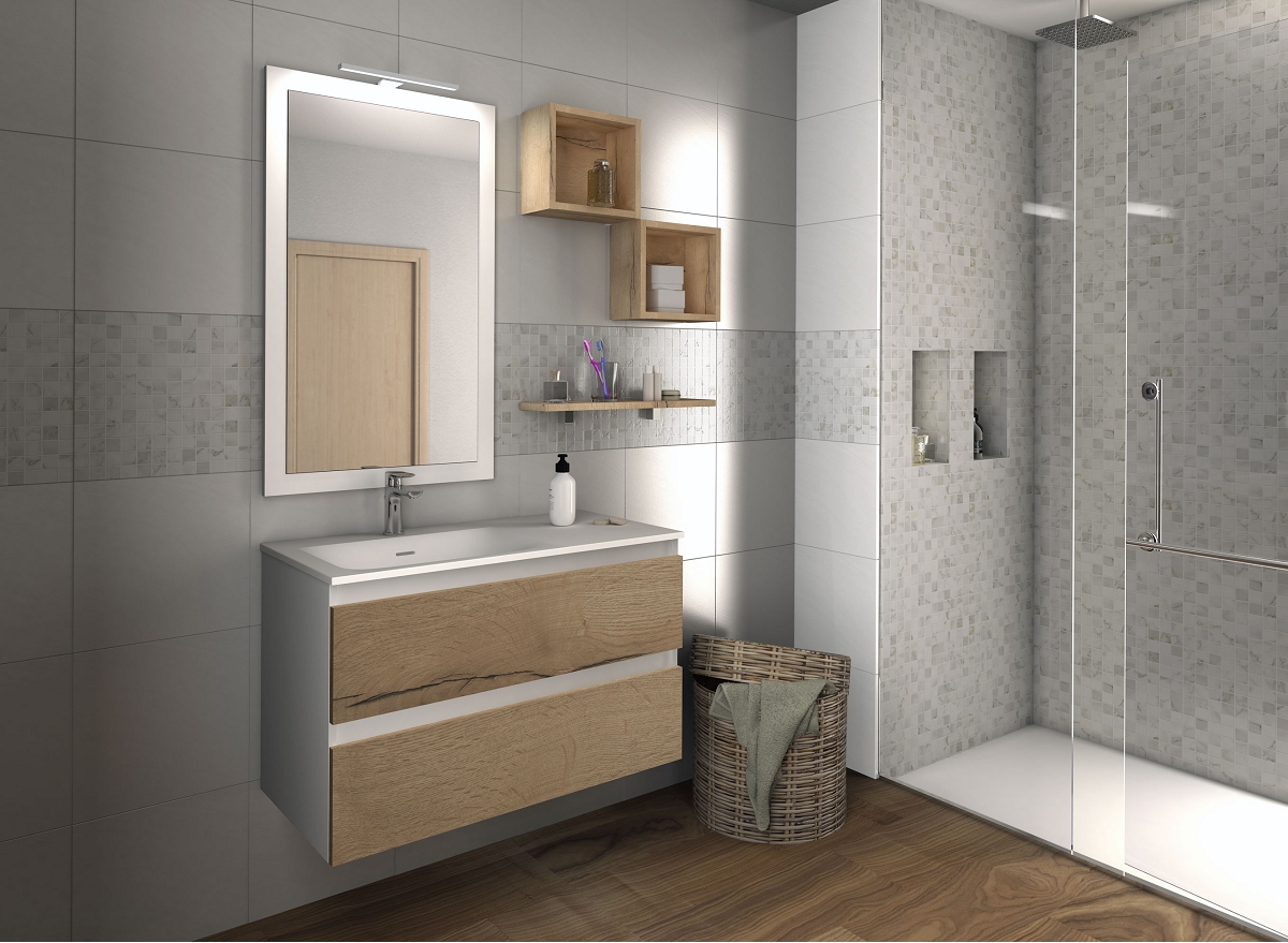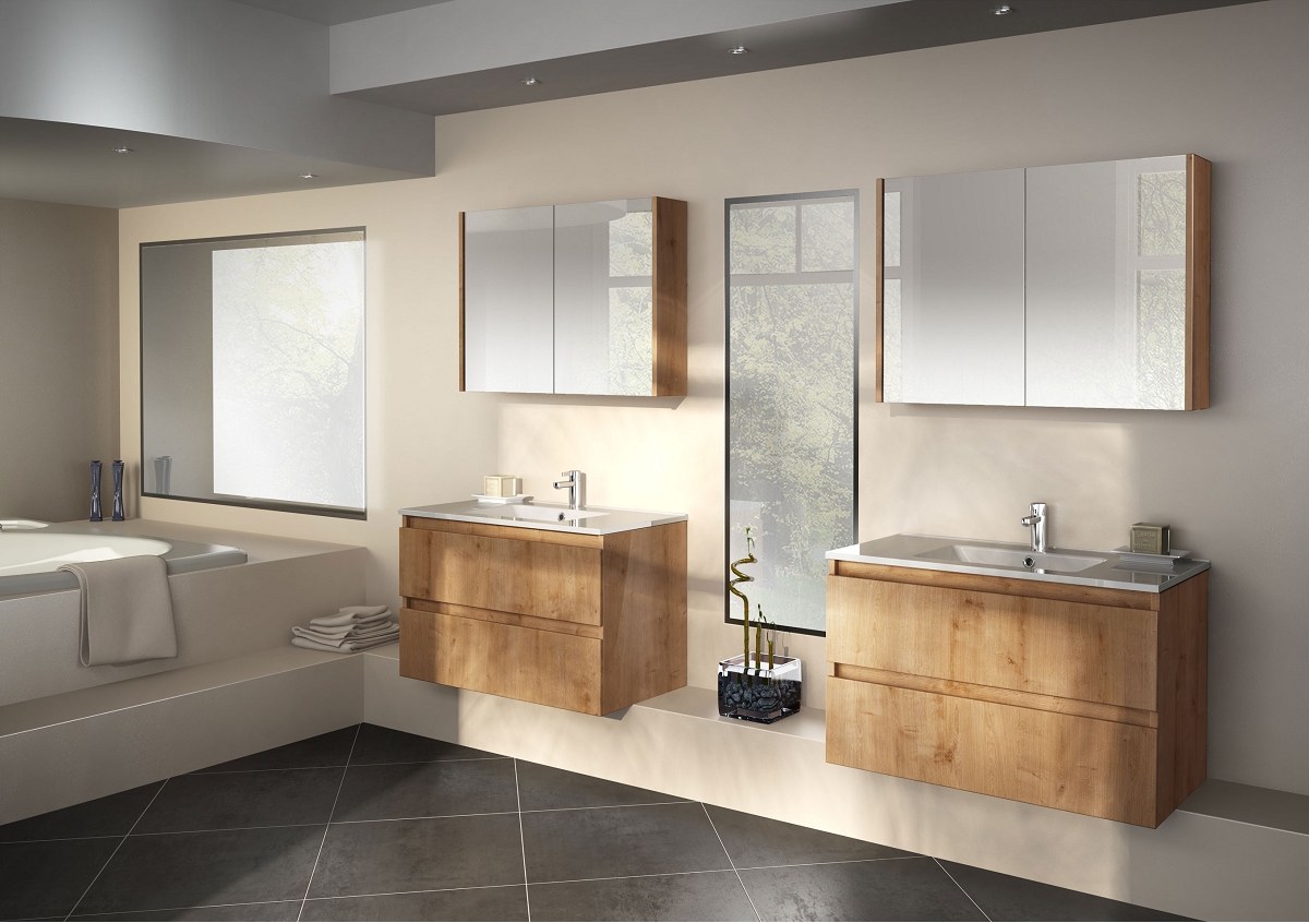 Code proposé : CONCEPT 90 avec miroir Néa + caisson + plan en céramique + poignées au choix